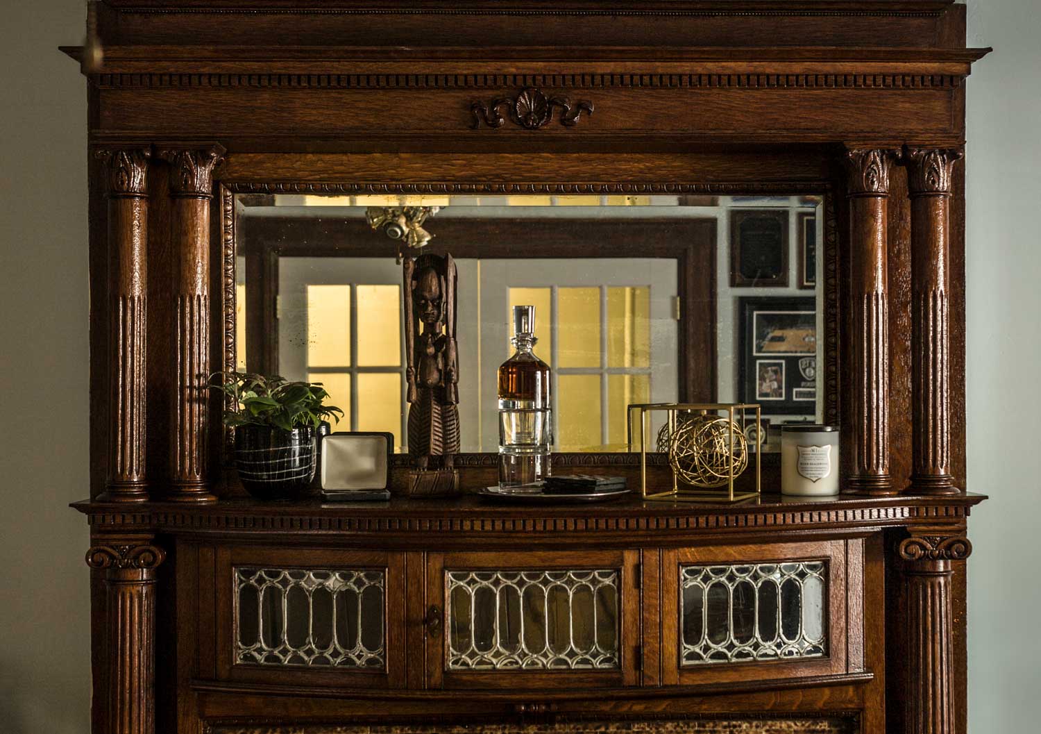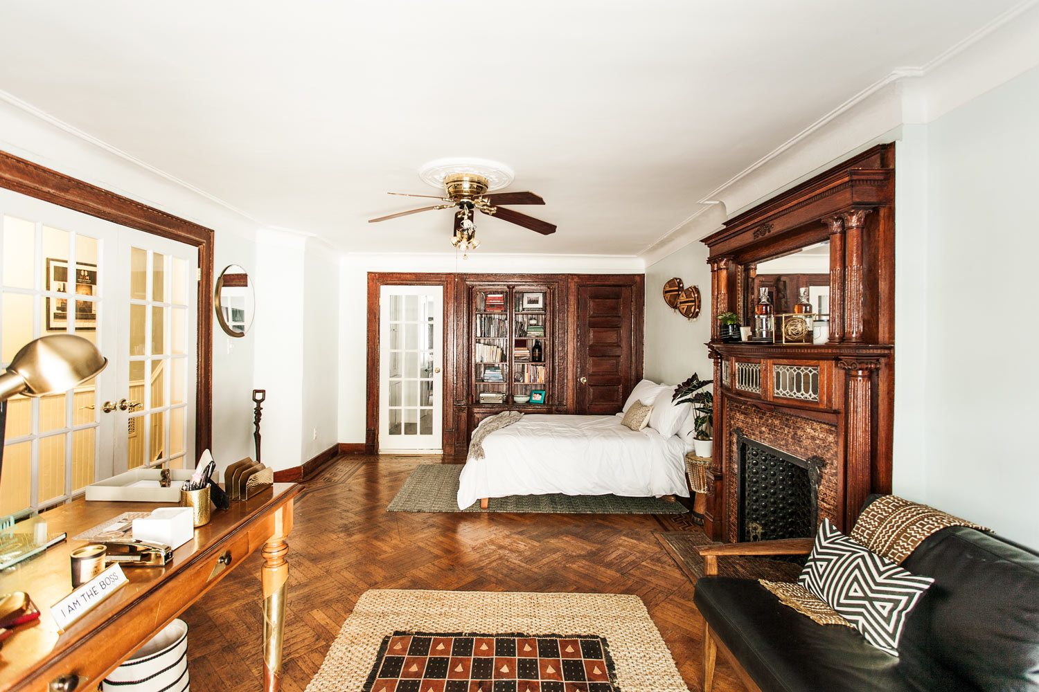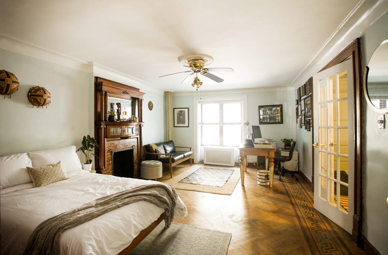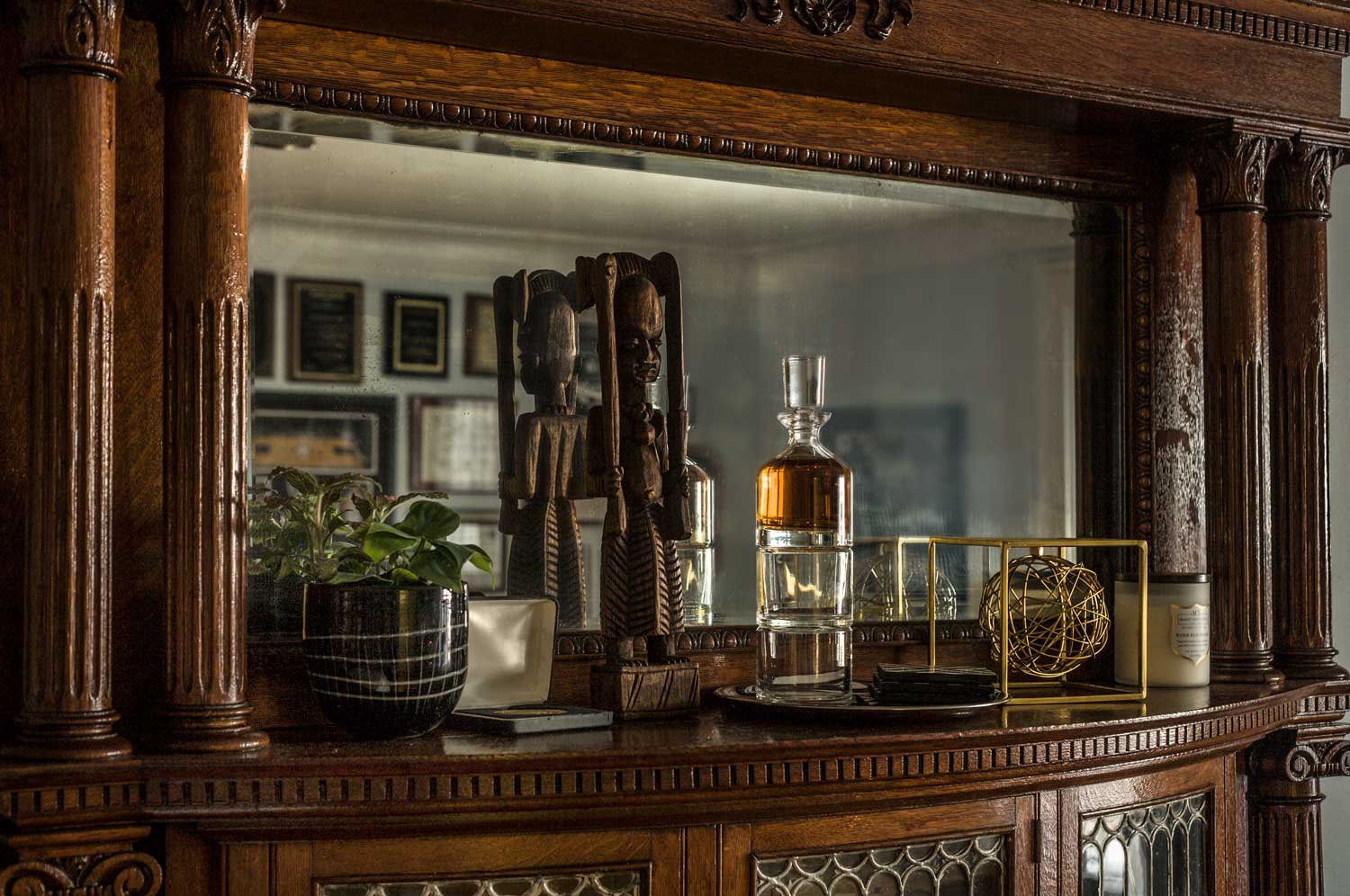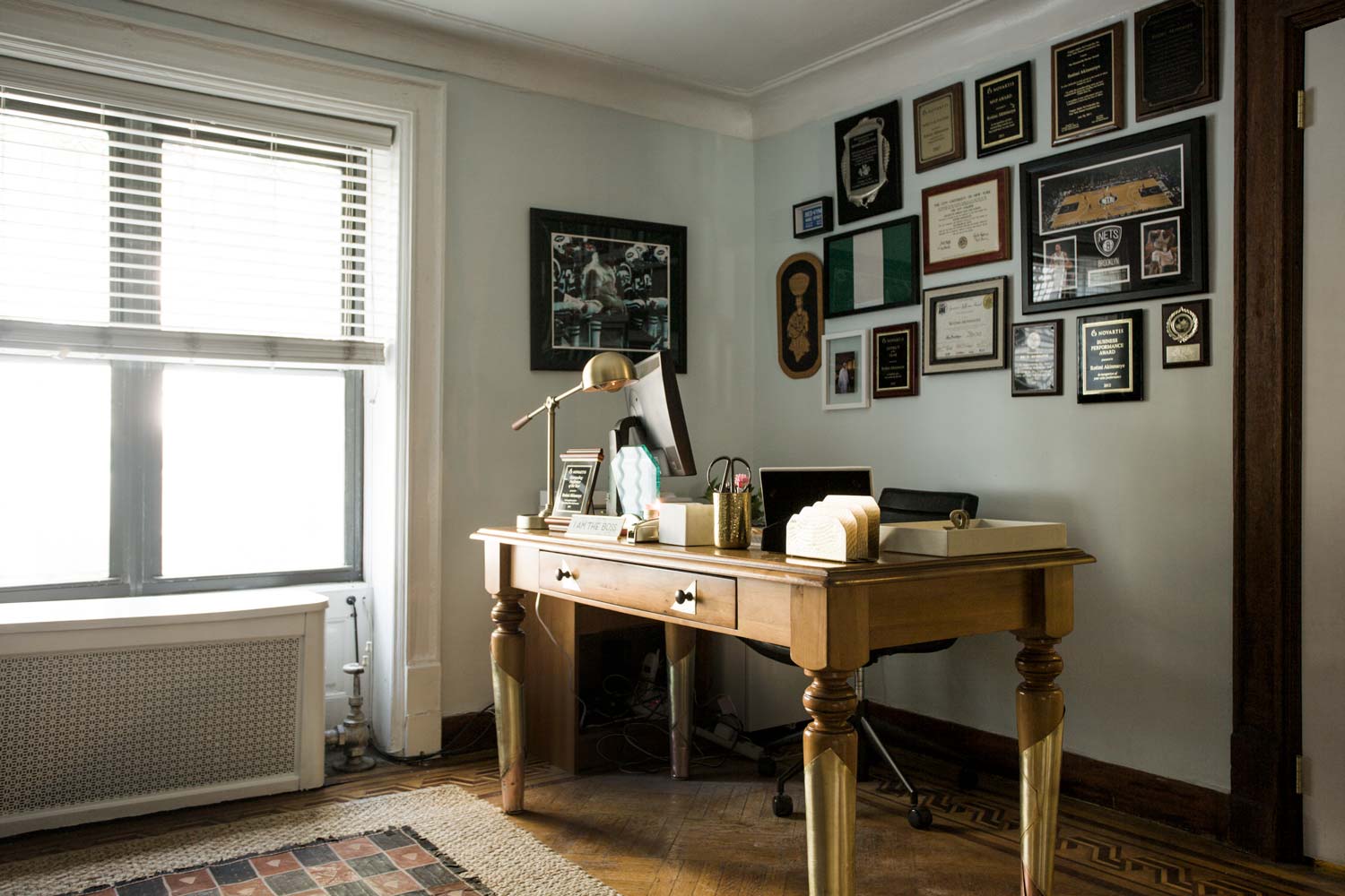 Elegant, sexy and functional. Nigerian artifacts sprinkled throughout bring a spirit of meaning and culture. We split the space down the center, for those who sleep and those who work. Used gold and wood accents to inspire great ideas. Bold textures and pattern play introduce an uncommon energy.
